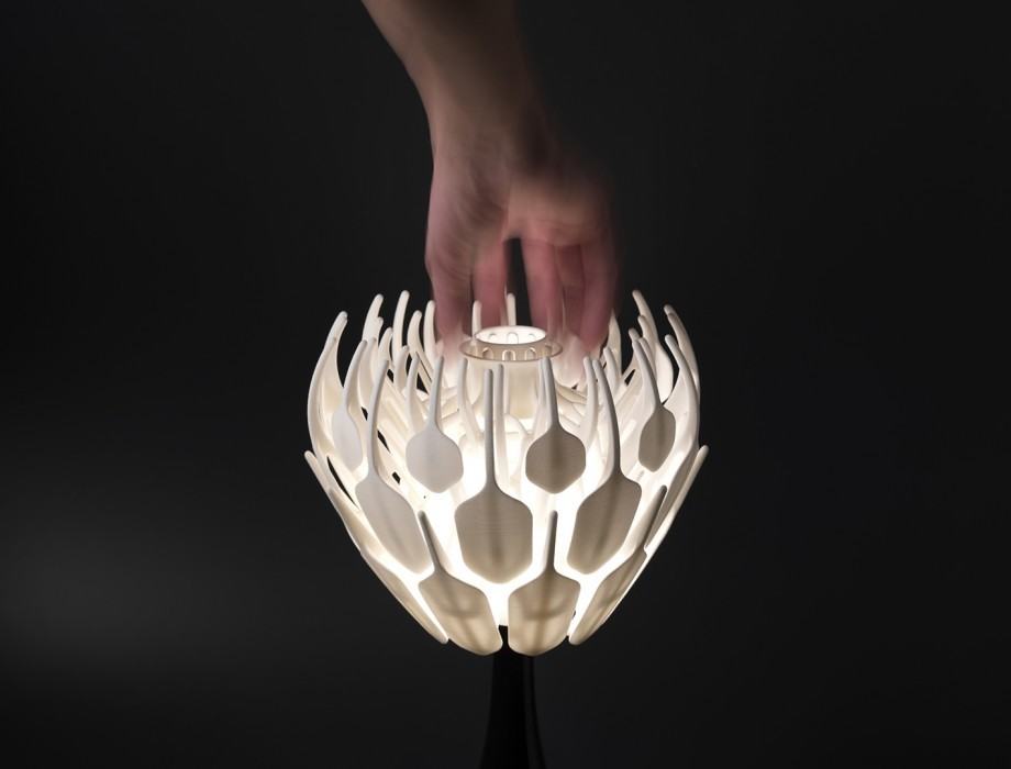 프랑스의 제품 디자이너 패트릭 주앙의 작품인 '블룸 (Bloom)' 은 꽃의 형태를 모티브로 디자인된 조명 기구 입니다. 힌지 구조로 구성된 각각의 꽃잎 (Petel) 들이 꽃이 피고 지듯 형태가 변하면서 빛이 확산되는 형태를 조절할 수 있습니다.